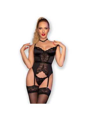 Uskalla astua esiin – Wildcat -korsettisetti on suunniteltu tuomaan esiin rohkea ja aistillinen puolesi. Tämä upea kokonaisuus sisältää säädettävillä sukkanauhoilla varustetun korsetin, yhteensopivat stringit sekä sukat, jotka yhdessä luovat näyttävän ilmeen.