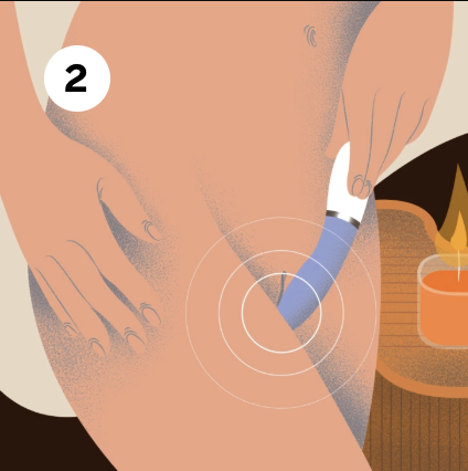 2. Aseta. Laita vibraattori päälle ja anna sen liukua parasta nautintoa tuoviin paikkoihin.